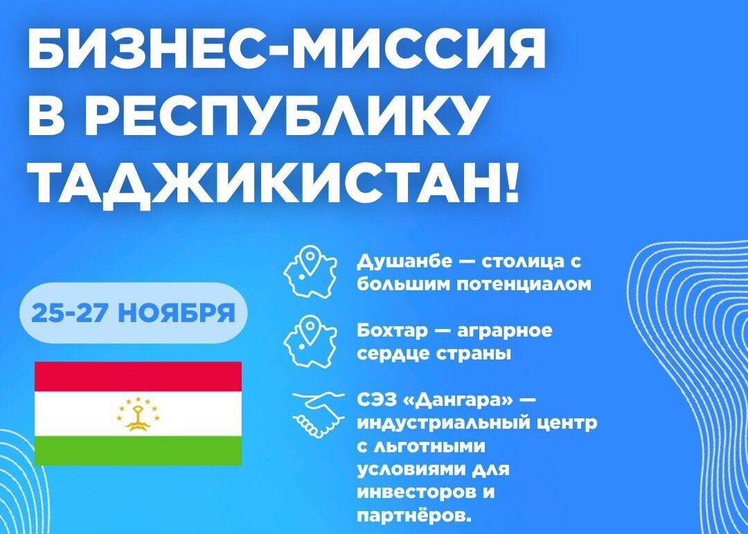 Участие в бизнес-миссии это отличная возможность найти новых партнёров, выйти на рынок Таджикистана и укрепить деловые связи в регионе Центральной Азии!